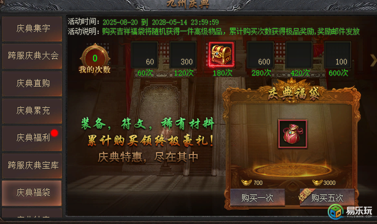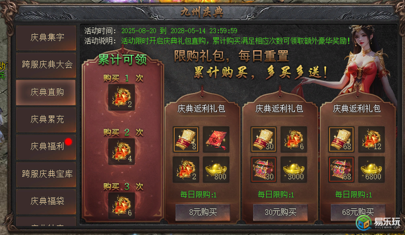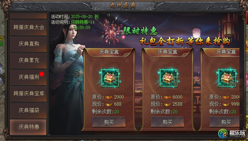5、「庆典特惠」消耗元宝购买庆典福利礼盒,获取海量资源;