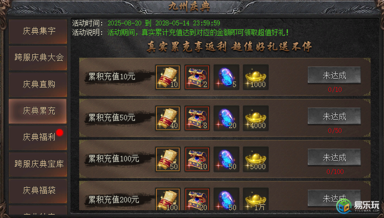 7、「庆典直购」元宝返利+天命石+珍稀道具三重返利;