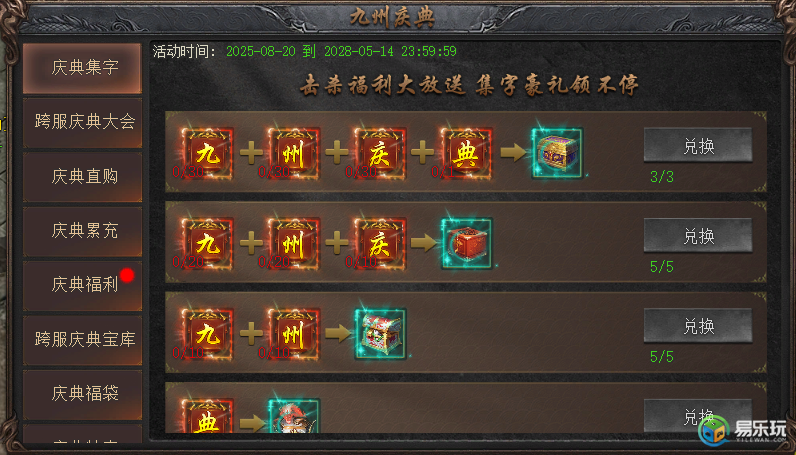 4、「庆典集字」庆典期间刷怪掉落庆典送好礼的道具,可兑换心仪道具;